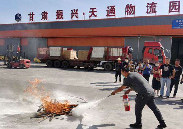 為積極響應(yīng)全國(guó)安全生產(chǎn)月“消除事故隱患 筑牢安全防線”主題,2020年5月21日,振興集團(tuán)安委會(huì)聯(lián)合億安消防培訓(xùn)中心組織甘肅振興?天通物流園商戶開(kāi)展了消防安全演練活動(dòng)。